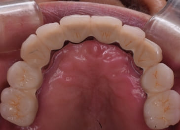 必要性が認められる場合、まずは仮歯で様子を見て咬み合わせや形態などを確認します。問題がないようなら、最終修復物を作製します。仮歯を作らない施設もあるようですが、当院ではこのステップでの確認を重要と考えております。