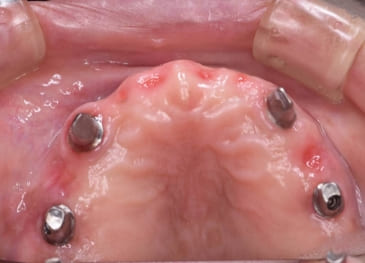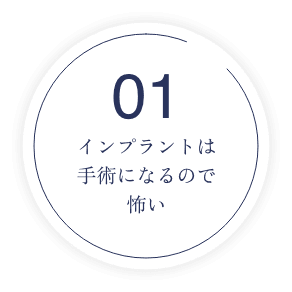歯肉を切開し、顎の骨にチタン製のインプラント体を埋入して歯肉を閉じます。局部麻酔を行いますので、治療中の痛みはほとんどありません。インプラントが少数本の場合は、翌日から通常の生活を送ることが出来ます。多少の違和感はありますが、気になるほどではなく、食事も特に変わりません。