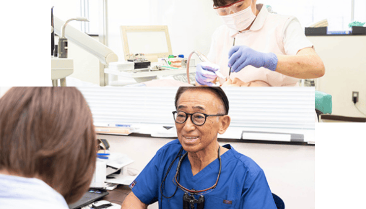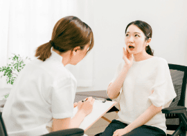 患者様のお口の中のお悩みなどをお伺いします。現在の状態のご説明と、考えられる治療のオプションをお話し、どのような状態が一番良いかご相談させていただきます。
