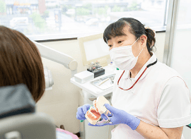 生活習慣の改善やセルフケアの徹底など、歯を失ってしまった根本的な問題を改善することがとても重要です。定期検診はインプラントだけではなく、どんな治療の後でも大切で、通院をしていただく必要があります。当院では、一人ひとりの状態に合わせて適切な期間で通院をしていただけるように、アドバイスをさせていただきます。